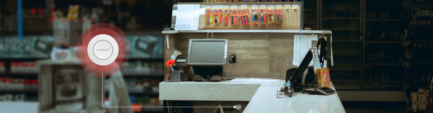 Installed under the checkout counter to trigger the alarm and ensure prompt assistance during dangerous or emergency situations.