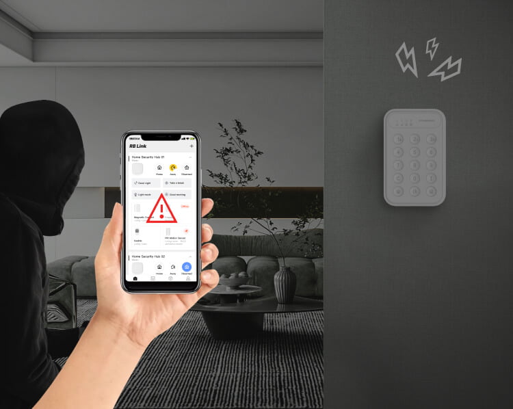 The alarm keypad offers a tamper protection alarm function that can be conveniently enabled or disabled through theRB-Link mobile app. When this feature is activated, any unauthorized attempt to dismantle the device will immediately trigger an alarm.