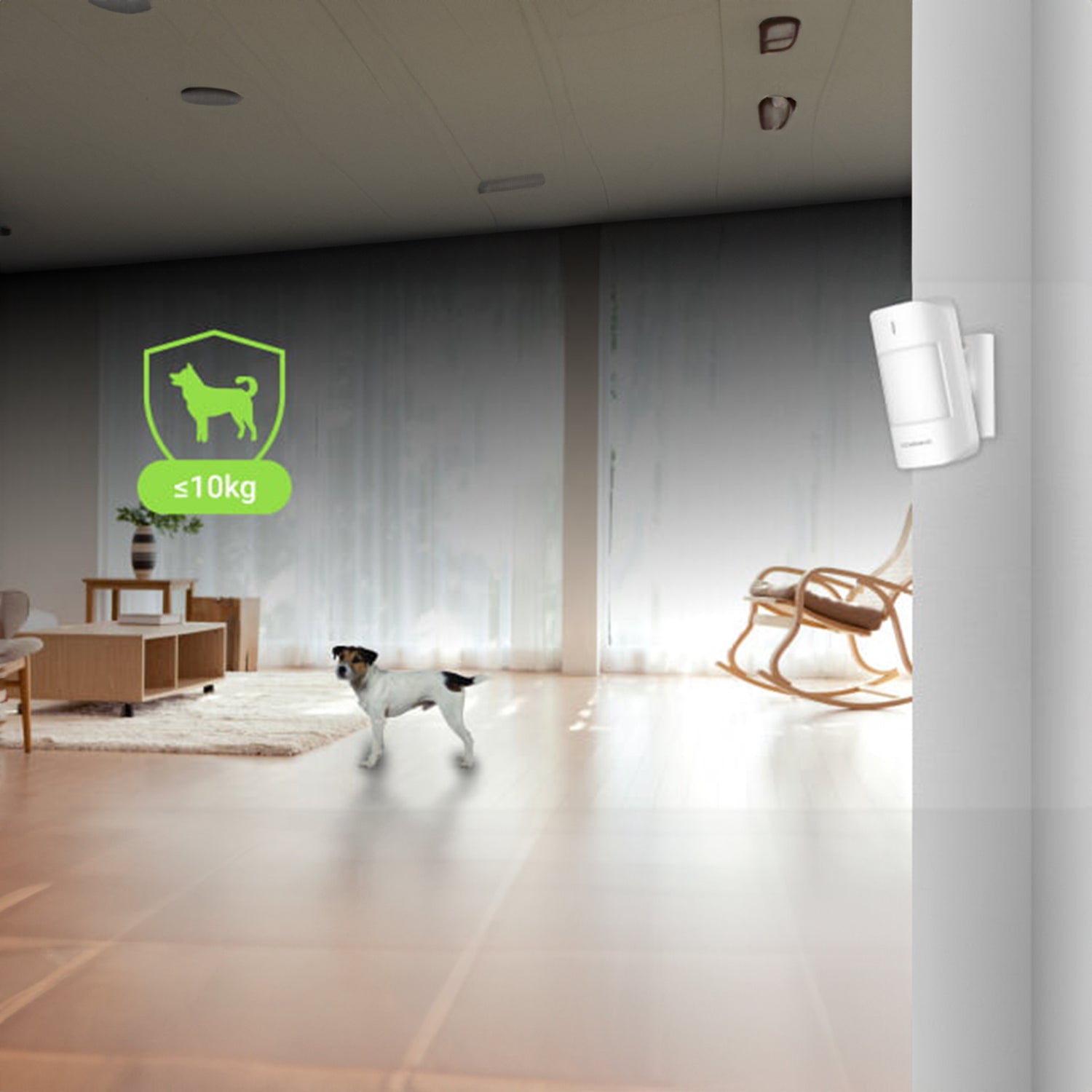 The PIR motion sensor adopts the pet-immunity design. In the armed state, the sensor will intelligently analyze the detection information. Pets weighing less than 10kg will not trigger the alarm, ensuring a pet-friendly and hassle-free security system.