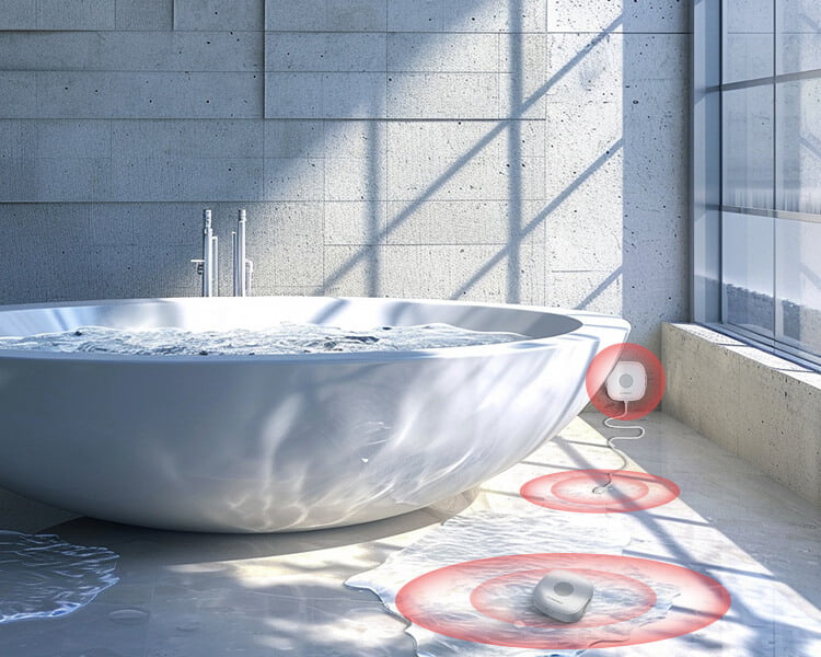 It can be easily placed in any areas susceptible to water leakage, such as the kitchen, bathroom, balcony, and more. In case of a water leak, the detector promptly detects the issue and triggers an alarm by linking with output devices to stop the spread of water, reduce water consumption and avoid potential risks, ensuring your household safety.